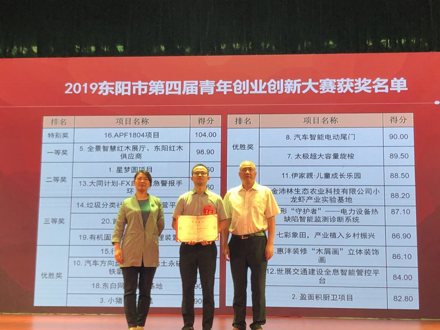 6月19日,普洛藥業(yè)藥物研究院的陳方磊博士及其團(tuán)隊(duì)帶領(lǐng)項(xiàng)目APF1804參加由東陽市人力資源和社會(huì)保障局、商務(wù)局、共青團(tuán)東陽市委員會(huì)共同舉辦的2019年東陽市第四屆青年創(chuàng)業(yè)創(chuàng)新大賽,并榮獲最高榮譽(yù)“特別獎(jiǎng)”,由東陽市副市長陳巧錦及人力資源和社會(huì)保障局局長黃正明共同為其頒獎(jiǎng)。