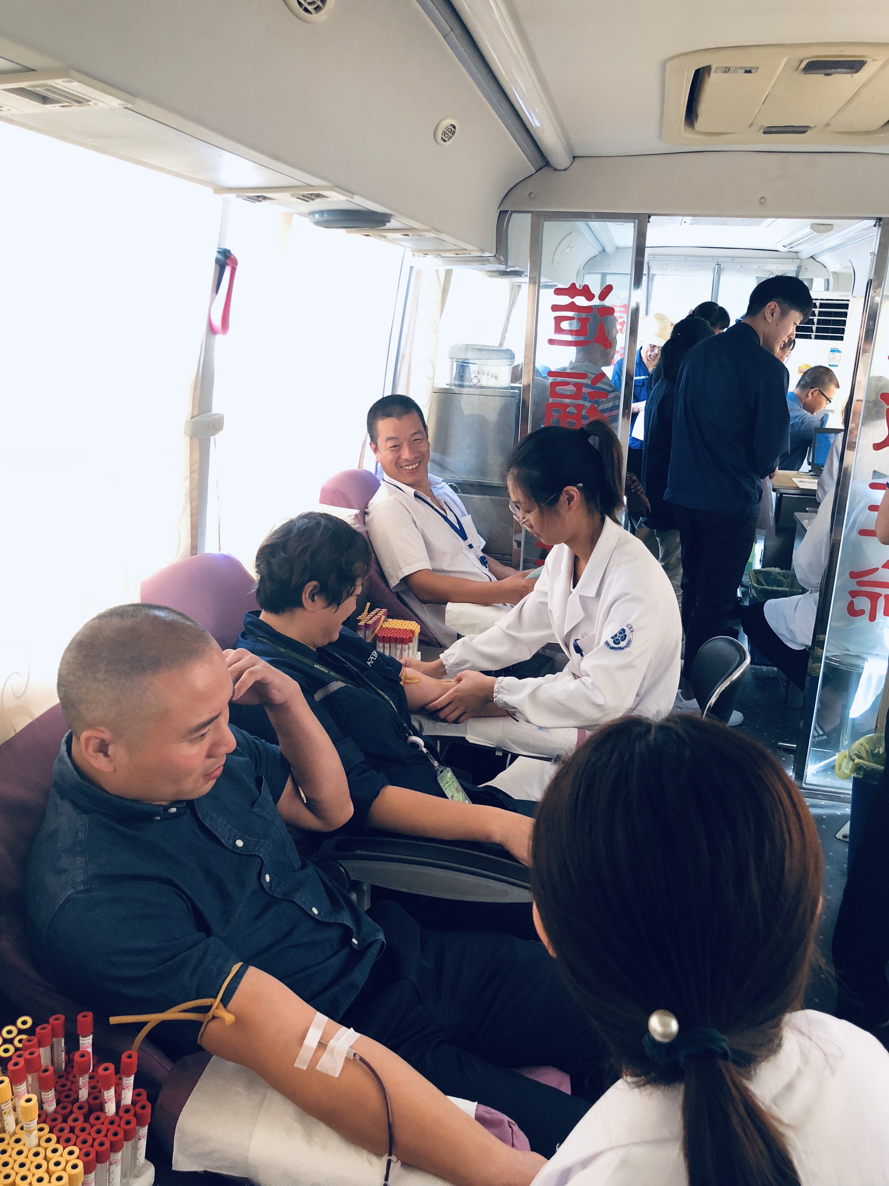 在普洛藥業(yè)團委工作人員的引導下,獻血活動有條不紊地開展,參與獻血的人員排起了長龍,從填表登記、抽血化驗,到排隊獻血,依次有序進行。順利通過檢查的員工高興的來到獻血車上,他們紛紛卷起袖管,獻出自己的愛心,望著自己鮮紅的血液緩緩地流入獻血袋中,他們臉上洋溢著的是獻血后的光榮與自豪。