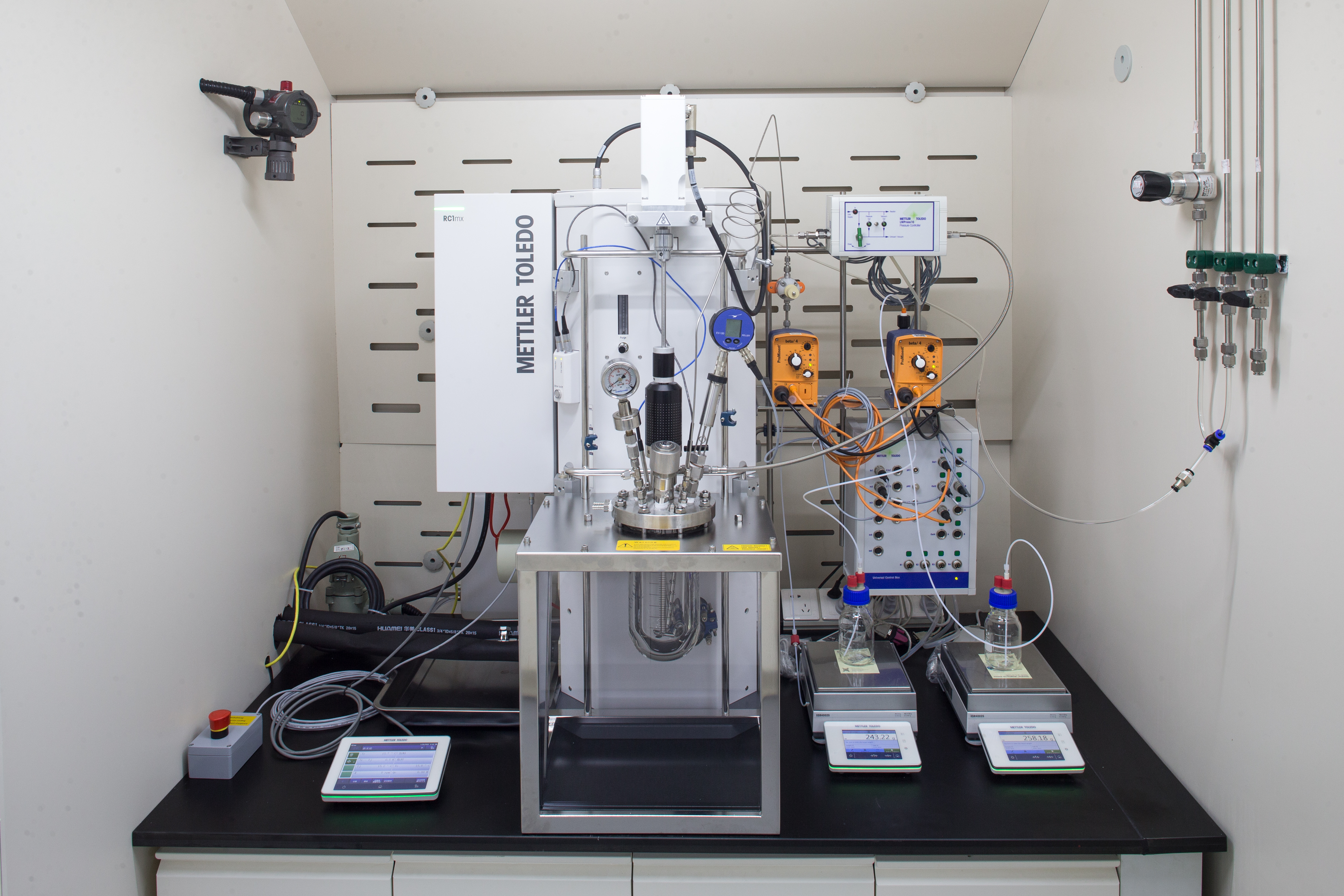 安全實驗室設備齊全,包含反應安全風險評估、理化性質檢測等需要的各種設備,包括差示掃描量熱儀(DSC)、絕熱加速量熱儀(ARC)、常壓反應量熱儀(RC1)、高壓反應量熱儀(RC1MX)、粉層云最小點火能測試儀(MIE)、全自動合成反應器(EASYMAX)、在線紅外等檢測儀器設備。擁有一流的檢測設備和齊全的檢測標準以及各類測試技術資料,具備動力學研究手段和技術能力。