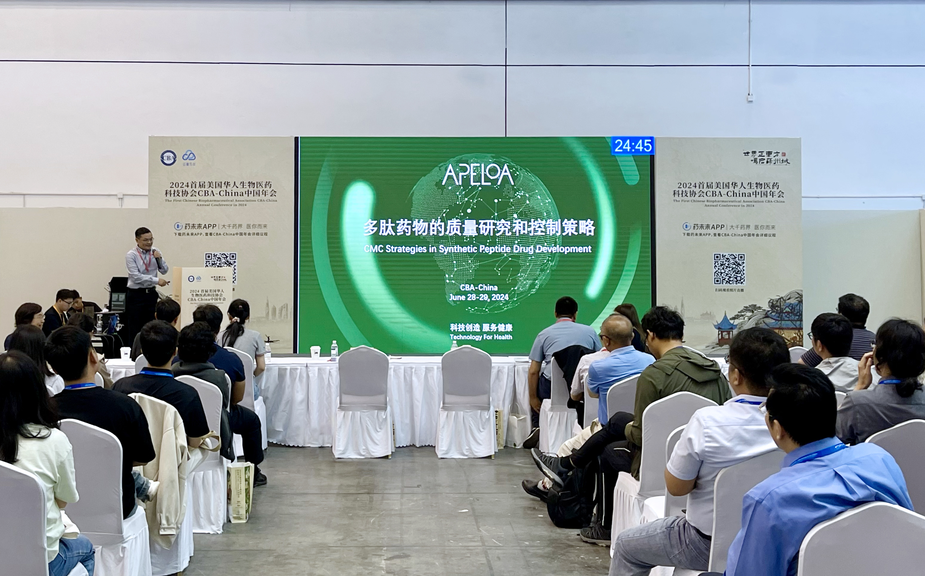 本次大會聚焦大小分子、ADC、AI及新技術、疫苗、投資與BD領域、多肽論壇、政策法律等熱門領域,開展了110+主題論壇。論壇上,普洛藥業多肽首席技術官徐財丁博士作為嘉賓發表了《關于多肽藥物的質量研究和控制策略》主題報告,分享公司在提高多肽藥物穩定性、純度和生物活性方面的最新研究成果和控制策略,引起了與會者的廣泛關注。大家共話行業發展,分享智慧觀點,共同探索生物醫藥產業創新之路。